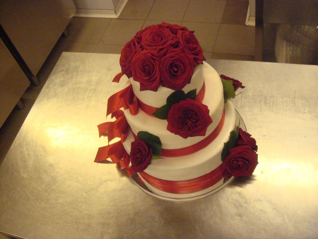 Vedno lepa klasična tortica z rdečimi vrtnicami je top torta za klasike.
