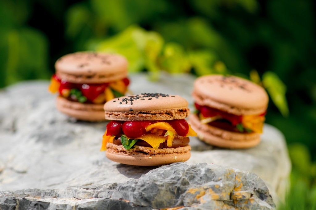 Burgerji, ki to niso. Ali pač. Sladki so... Makrone vsi poznate, ne? No, makrone sem malce drugače napolnil. Meso je nadomestila čokolada, sir marelica, solato peppermint, itd... Vrhunska sladica, ki se topi, poka ter drobi v ustih, vse hkrati. Harmoničnost okusov ter prezentacija sladice je vrhunska!